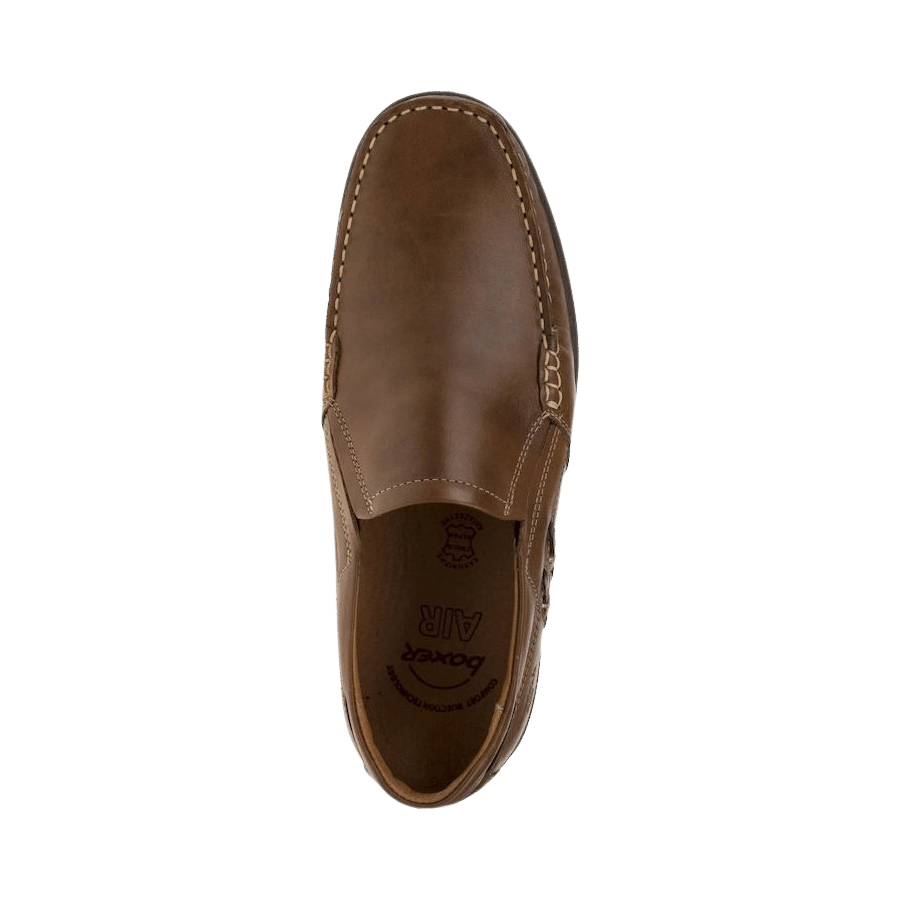 Ανδρικά μοκασίνια της εταιρίας Boxer. Είναι κατασκευασμένα από δέρμα, ένα υλικό που αναπνέει βοηθώντας στην αποφυγή δυσάρεστων οσμών, ενώ παράλληλα καθαρίζεται εύκολα. Προσαρμόζονται στη φόρμα του ποδιού παρέχοντας επιπλέον άνεση.